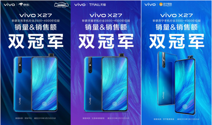 3月23日晚,京东、天猫及苏宁易购三大平台发布了vivo X27的首销战报。战报显示,vivo X27在开售当日一举拿下了三大电商3500-4000元价位段销量和销售额双,无疑成为当下最受追捧的年度旗舰新品之一。