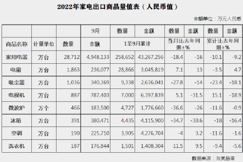 奥维云网数据显示,截止今年9月,中国家电市场国内零售规模为5103亿元,同比下滑6.1个百分点。
