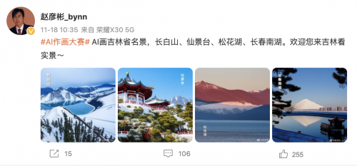 除世界杯话题之外,古诗词主题也是网友比较热衷的“创作”方向,用AI绘画去描摹古风里的诗情画意,人文与科技的结合,其呈现也往往妙不可言。