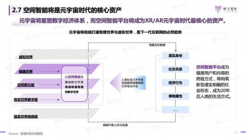 · 元宇宙将重塑数字经济体系,而空间智能平台将成为XR/AR元宇宙时代最核心的资产